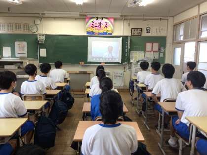 学校生活のスタートにあたり、全校集会を開きました。熱中症対策のため、オンライン形式です。写真は3年生の様子です。夏休み中の部活動やコンクールなどの表彰伝達や、校長講話を行いました。