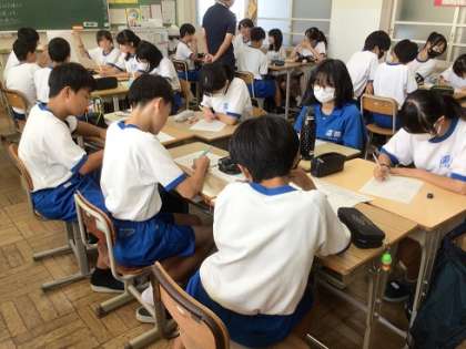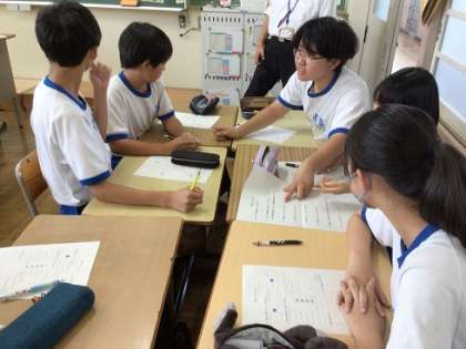 1年生の数学科です。数あてマジックの謎を解明することで、文字を使うことのよさを理解していきます。
