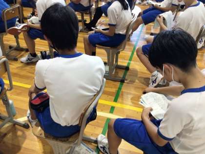9月11日(水)自然教室まであと6日1 公開日 2024/09/12 更新日 2024/09/12 学校行事 2年生です。集会を開いて、自然教室についての確認をしています。3日間、いろいろな取組が予定されていますが、しっかりと準備を進めていきましょう。