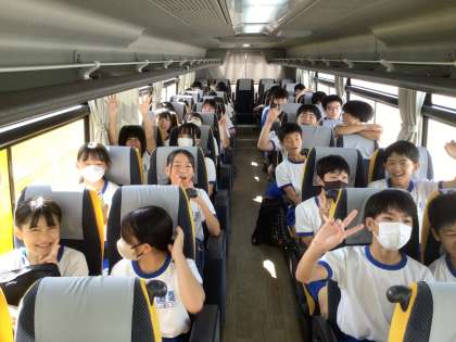 若狭湾青少年自然の家に向かって、出発しました。みんな元気です♪