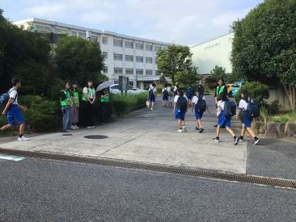 2年生の自然教室、連休が終わり、新しい週が始まります。逢中生の登校時間に合わせて、育友会によるあいさつ運動を行いました。
