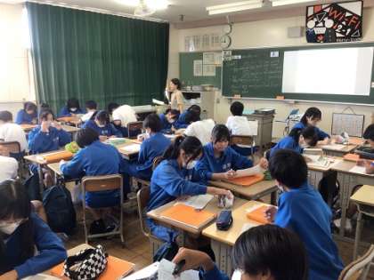 2年生の英語科です。時計の歴史について書かれた英文を読み取りながら学習を進めています。