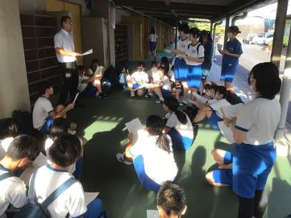 10/6(日)に、逢妻交流館にて行われる「逢妻ふれあいまつり」。今年も多くの逢中生がボランティア等で参加します。写真は合唱を発表する逢中生が、事前の打ち合わせをしている様子です。逢中生の力で、今回のふれあいまつりを支え、盛り上げてくれる姿が楽しみです。