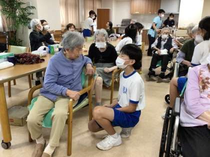 1年生が取り組んでいる、総合的な学習の時間における福祉交流学習の様子です。今日も学区内の福祉施設の皆さんにご協力いただきました。教室ではできない貴重な体験や学習の時間となっています。