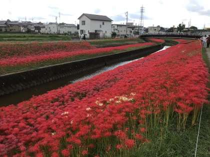 今年は暑さの影響により開花が遅れていたそうですが、見頃を迎えているようです。多くの方が訪れていました。逢中学区の名所です。