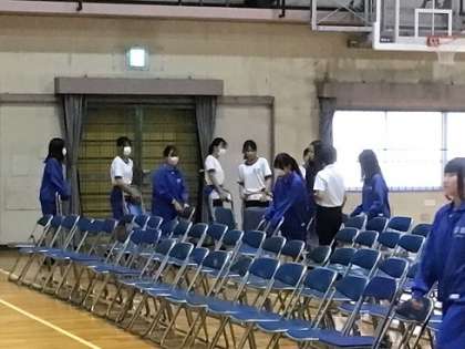 今日は昨日の1年生に続き、2年生と3年生のプレ合唱です。朝、2年生の生徒たち有志が、会場設置を進めてくれました。皆さんのおかげで、プレ合唱が開催できます。