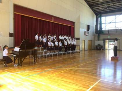 発表後の講評では、「表情を柔らかく」「テンポをより感じて」「口を縦にあけて」などの具体的なアドバイスがありました。3年生はどの学級も難曲に挑戦していて、とても聴きごたえがありました。本番での発表が大いに楽しみです。