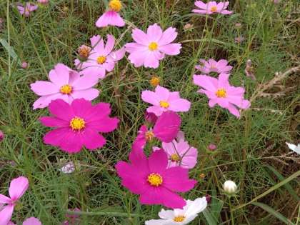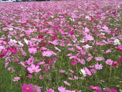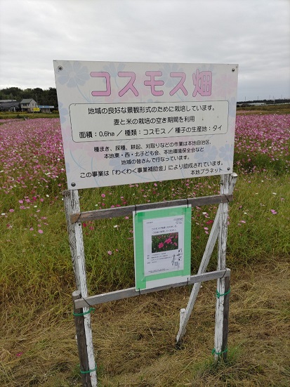 8月4日(日)に、逢中生ボランティアが本地プラネットで種まきをしたコスモスが見頃を迎えました。訪れる人たちの目を楽しませてくれています。ぜひご覧ください。