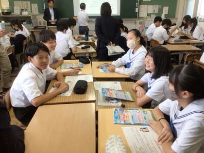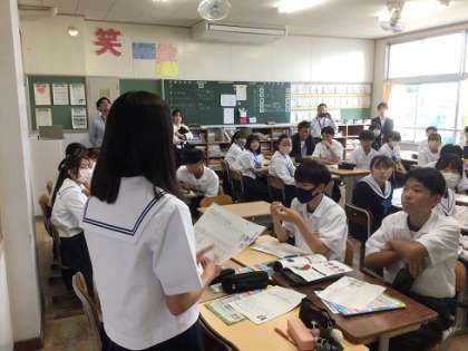 2年生の総合的な学習の時間の中で、環境教育として行いました。市役所や企業の方に来校いただき、豊田市のゴミの状況について様々なことを学びました。そのうえで、プラゴミの削減や資源として有効活用するために、市民にどのように知らせていくとよいかを考えました。