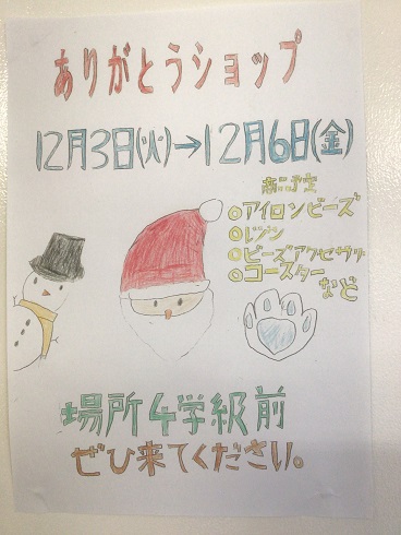 11月14日(木)「ありがとうショップ」を開きます 公開日 2024/11/14 更新日 2024/11/14 お知らせ ありがとう学級の生徒たちが制作したグッズを販売する「ありがとうショップ」を個別懇談会の日程(12/3火〜12/6金)にあわせて開店します。 アイロンビーズ、キーホルダ、コースターなど、いろいろな小物を販売しています。今回は新作も用意してくれています。どれも手作りのあたたかい作品です。 ご来校の際は、ぜひお立ち寄りください。