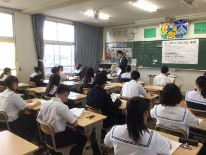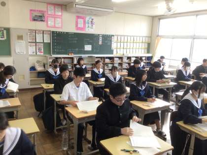 11月15日(金)1・2年生も始まりました1 公開日 2024/11/15 更新日 2024/11/15 お知らせ 3年生は昨日から始まった中間テストですが、今日から1・2年生も始まりました。写真は、テスト開始直前の2年生です。最初の教科は英語科です。さあ、がんばって!