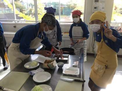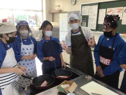 2年生の家庭科です。鮭のムニエルに挑戦です。楽しそうにみんなで協力しながら実習を進めていました。さて、味はどうでしたか?