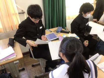 学習用タブレットを活用して、友だちの現代語訳にふれたり、自分の考えをまとめたりしました。