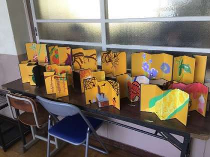 3年生の作品「屏風絵を描こう」です。
