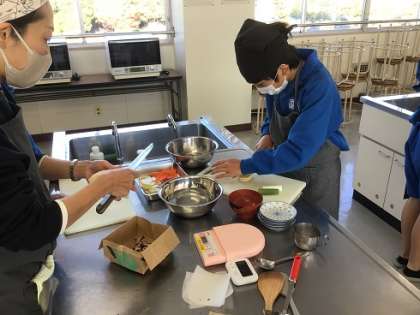 12月10日(火)授業の様子2 公開日 2024/12/11 更新日 2024/12/11 お知らせ 自分で食材から料理をして、自分で食べることはあまり機会がないことだと思います。日々の暮らしに活かすことができる知識と技能を身につける場となりましたね。