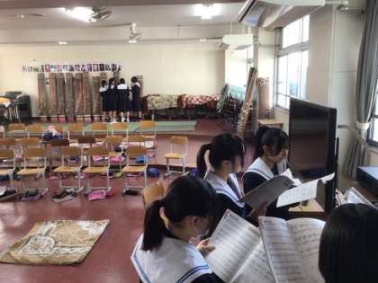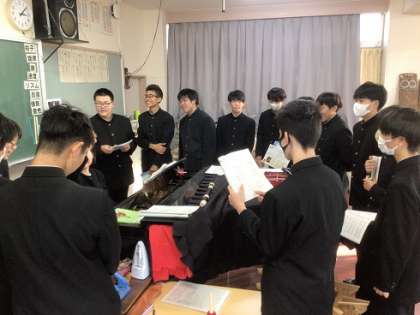 3年生の音楽科です。卒業期によく歌われる「旅立ちの日に」を練習しています。実際の卒業式では、これと違う曲を歌うようです。卒業がだんだんと近づいてきているのを感じます。
