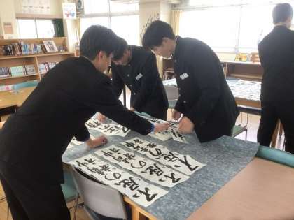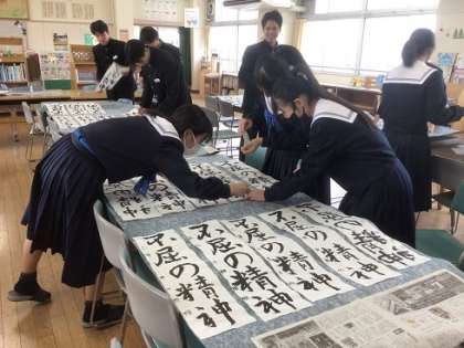 1月9日(木)書き初めの展示準備 公開日 2025/01/09 更新日 2025/01/09 お知らせ 3年生です。掲示ボランティアの生徒が、準備を進めてくれました。それぞれの作品をみんなで見合うことができますね。お疲れさまでした。