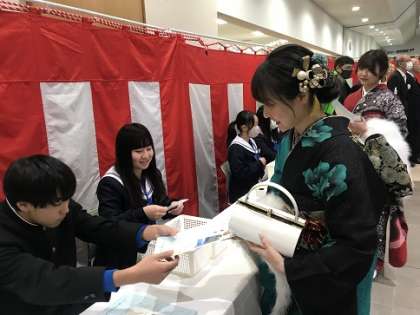 西部コミュニティセンターにて、逢妻地区の「二十歳のつどい」が開催されました。総合的な学習の時間のなかで、これまで逢妻地区を盛り上げていこうと活動を進めてきた3年生が、会の運営に参加しました。
