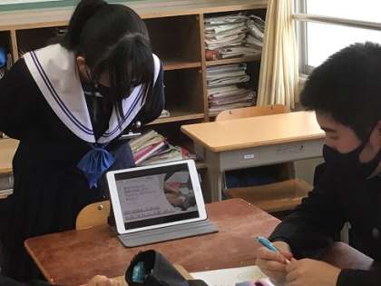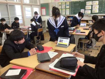学習用タブレットを活用して作成したプレゼンをもとに、一人8分間の発表です。単に話すだけではなく、聴き手を意識し工夫が感じられる聴きごたえのある内容でした。