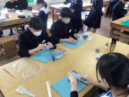 2年生の美術科です。造形活動として、実物を見ながら粘土で野菜を作っていきます。よい作品ができあがるといいですね。