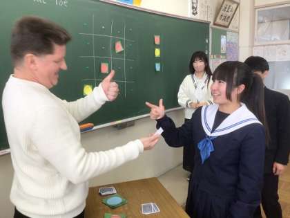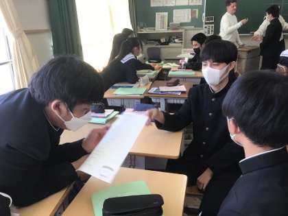 3年生の英語科です。ALTの先生とコミュニケーションをはかりながら、学習活動を進めています。