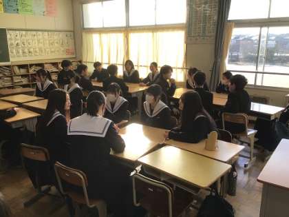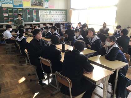 今週、朝の逢中タイムの時間を活用して、生徒会が企画したトークタイムを行っています。たくさんの人と話すことで、よりクラスの仲を深めます。上が1年生、下が3年生です。