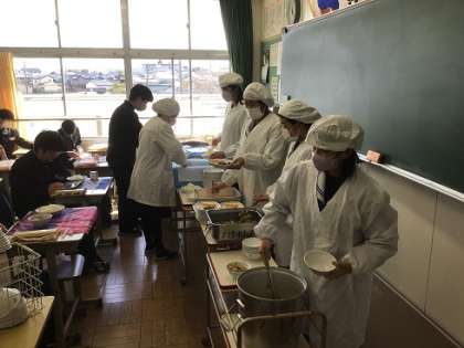 2月19日(水)配膳をはやくしようキャンペーン 公開日 2025/02/20 更新日 2025/02/20 お知らせ 給食委員会の企画です。このキャンペーンを通して、普段の給食の準備状況をあらためて振り返ってみたいですね。写真は3年生です。