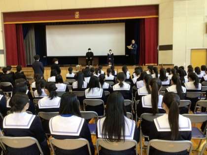 まずは、昨年度の録画を観たり、卒業式に向かう心構えと式場内での姿勢や礼の確認をしたりしました。