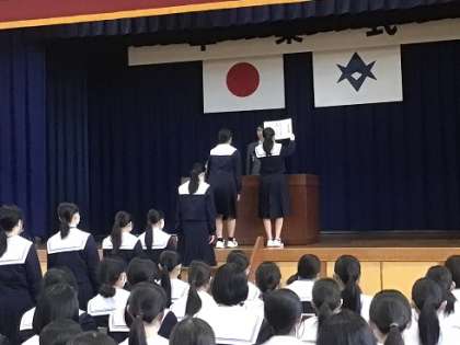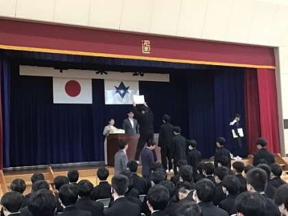 写真は、卒業式を受け取る場面の練習の様子です。厳粛ななかにもあたたかさのある式にしていきたいと思います。