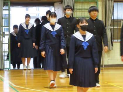 そこで、卒業式当日には参加しない1年生も校内卒業式には参加して、1・2年生みんなで卒業する3年生の門出をお祝いしました。