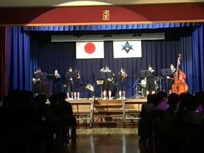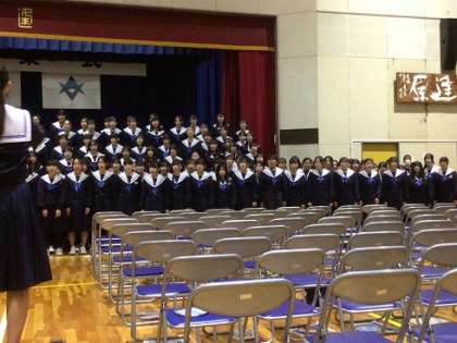 卒業前に楽しい時間を過ごそうと、3年生が学年文化祭を開催しました。会の最初、参観に来た先生方への歌の贈り物がありました。