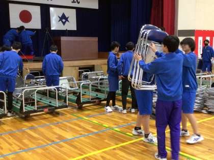 明日の卒業式に備え、午後から2年生が準備を行いました。