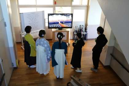 校内卒業式の日、卒業式当日に参加できない1年生は、3年生に「翼をください」の合唱をプレゼントしました。それを受けて、2年生も「歌いたい!」という声があがりました。
