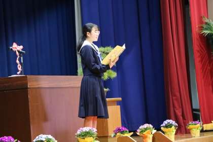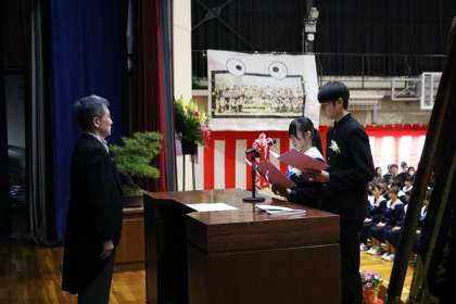 上は在校生代表による送辞です。3年生と共に過ごした部活動や体育祭・合唱祭など行事の思い出をはじめ、3年生への憧れと感謝の気持ちが語られました。また、先輩の姿を受け継ぎ、この逢妻中学校を「愛」にあふれる学校へと導く決意も語られました。素晴らしい贈る言葉でした。