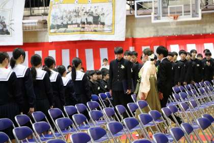 来賓の皆様、保護者の皆様、本日は卒業式にご参列いただき誠にありがとうございました。卒業生267名が、逢妻中学校を力強く旅立ちました。