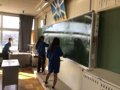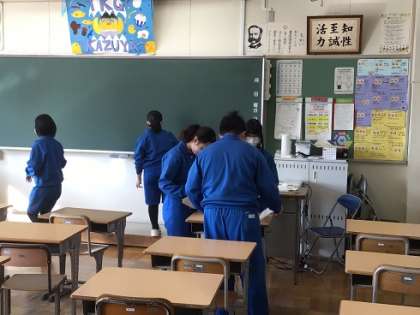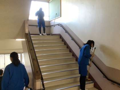 3年生の教室の片付けや清掃、廊下や階段の清掃なども行いました。