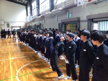3月12日(水)立志式に向けて(2年生)1 公開日 2025/03/12 更新日 2025/03/12 お知らせ 2年生が、3/14金に「立志式」を計画しています。今日は、当日に向けて体育館で練習を行いました。