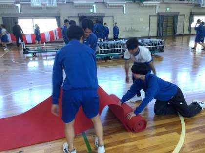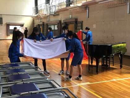 どの生徒もてきぱきと活動していました。みるみるうちに体育館が元通りになり、予定していた時間よりも早く片付けることができました。とてもうれしく、頼もしく感じる3年生です。