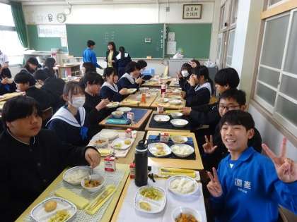 4月10日(木)給食が始まりました。 公開日 2025/04/10 更新日 2025/04/10 お知らせ 給食がスタートしました。今日の献立は、キャベツの昆布あえ、豆腐しんじょ、肉じゃが、ごはんでした。毎日の食生活を大切にして、健康的な生活を送っていきましょう。