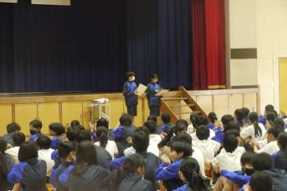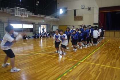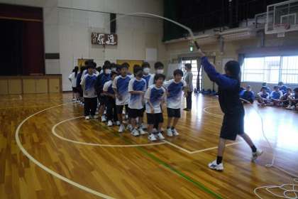 1年生です。体育館に集まり、学年レクを開催しました。大縄跳びと八の字跳びに挑戦です。中学校生活最初の体育祭に向けて、学級や学年の仲が深まっていく姿が楽しみです。