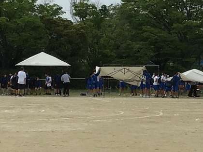 5月14日(水)体育祭予行演習1 公開日 2025/05/14 更新日 2025/05/14 お知らせ 土曜日の体育祭に向けて、予行演習を行いました。陽ざしが強くなることが予想されたため、本番同様に生徒席のテントを設置しました。3年生を中心に、スムーズに準備ができました。