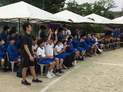 5月14日(水)体育祭予行演習6 公開日 2025/05/14 更新日 2025/05/14 お知らせ 肩を組んで気持ちを高めたり、組団ごとにまとまって応援をしたりしています。本番でも皆さんの力で体育祭を盛り上げていきましょう。