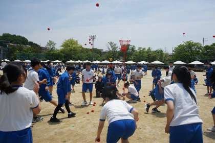 5月14日(水)体育祭予行演習8 公開日 2025/05/14 更新日 2025/05/14 お知らせ 予行演習終了後、生徒会種目である玉入れ競技を行いました。順位はつきましたが、どの団も学年の枠を越えて応援し、全力で取り組む姿が素晴らしかったです。
