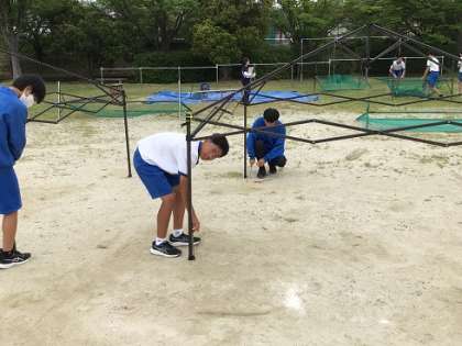 係の動きに加え、グランドの整備やテントの固定なども入念に行いました。