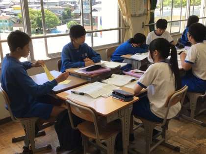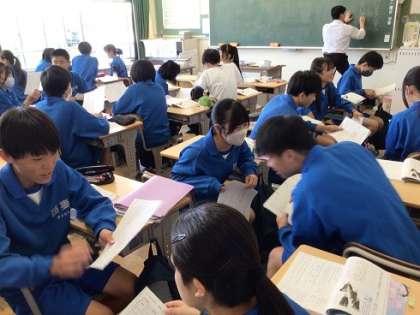 3年生の国語科です。教育実習生の研究授業として行いました。自分の心に響く論語についての考えをまとめたり、発表したりしました。