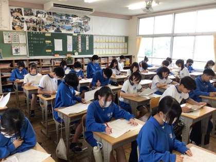 写真は、戻ってきたテスト用紙を見ながら振り返りをする3年生です。テストまでの取組を思い返しながら、自分の日々の学習の様子やこれからの課題等について見直しを進めていきたいですね。