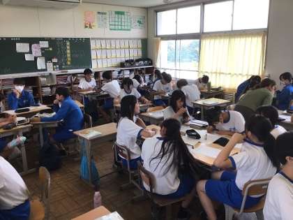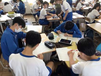 3年生の数学科です。ルート(根号)を含んだ式の計算問題に挑戦しています。