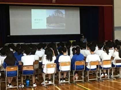 3年生が、9月に予定されている修学旅行に向けた学年集会を行いました。スローガンの発表や見学先の写真等を見ながら、様々なことを確認しました。これからも協力して準備することで、思い出に残る修学旅行を創り上げていきましょう。