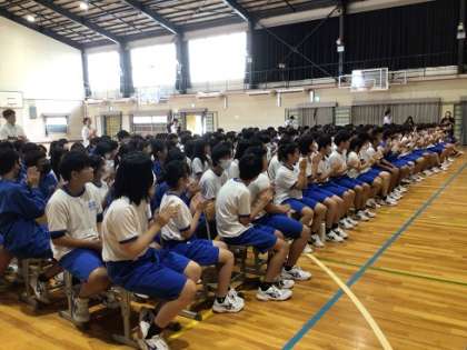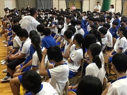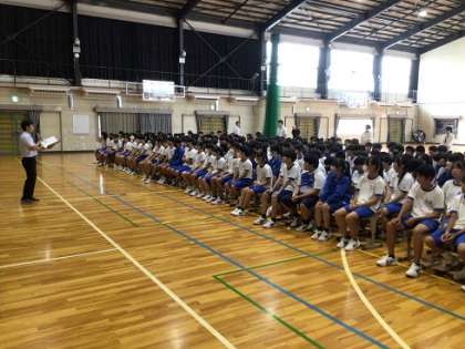 2年生の学年集会です。夏休み中の生活や学習について確認しました。9月には自然教室が予定されています。健康的な夏休みを過ごすことで、体調面の準備もしっかりと進めておきましょう。