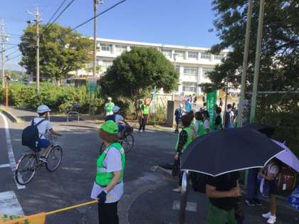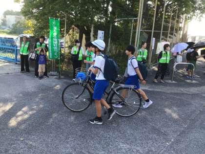 写真は南門付近の様子です。民生児童委員の皆さん、育友会の皆さん、逢中生に温かい声をかけていただき、ありがとうございました。